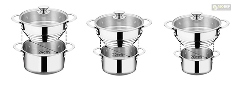 - Sản phẩm gồm: Nắp đậy, xửng hấp, nồi chứa nước